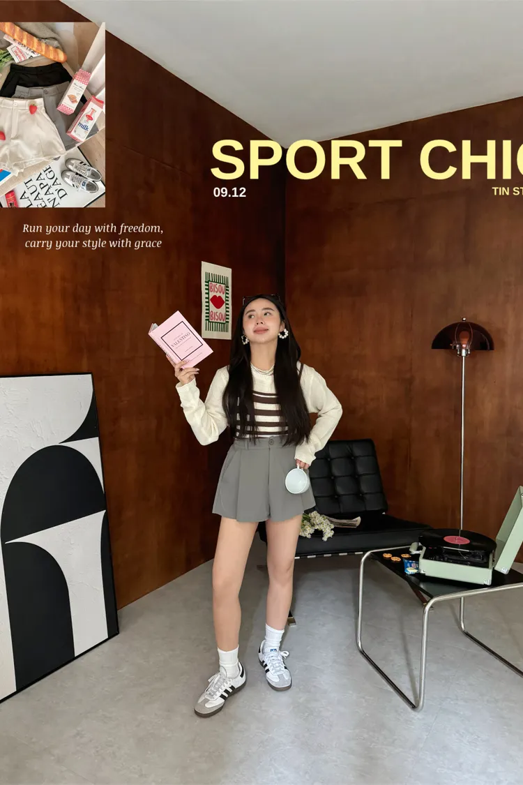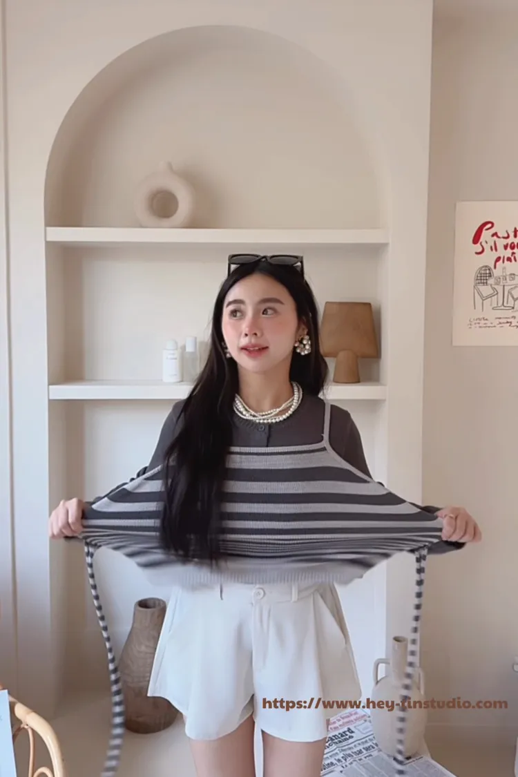 ✨首爾女孩👧🏻🍿🩷學院條文綁帶2件套‼️藏肉肉首選🔥