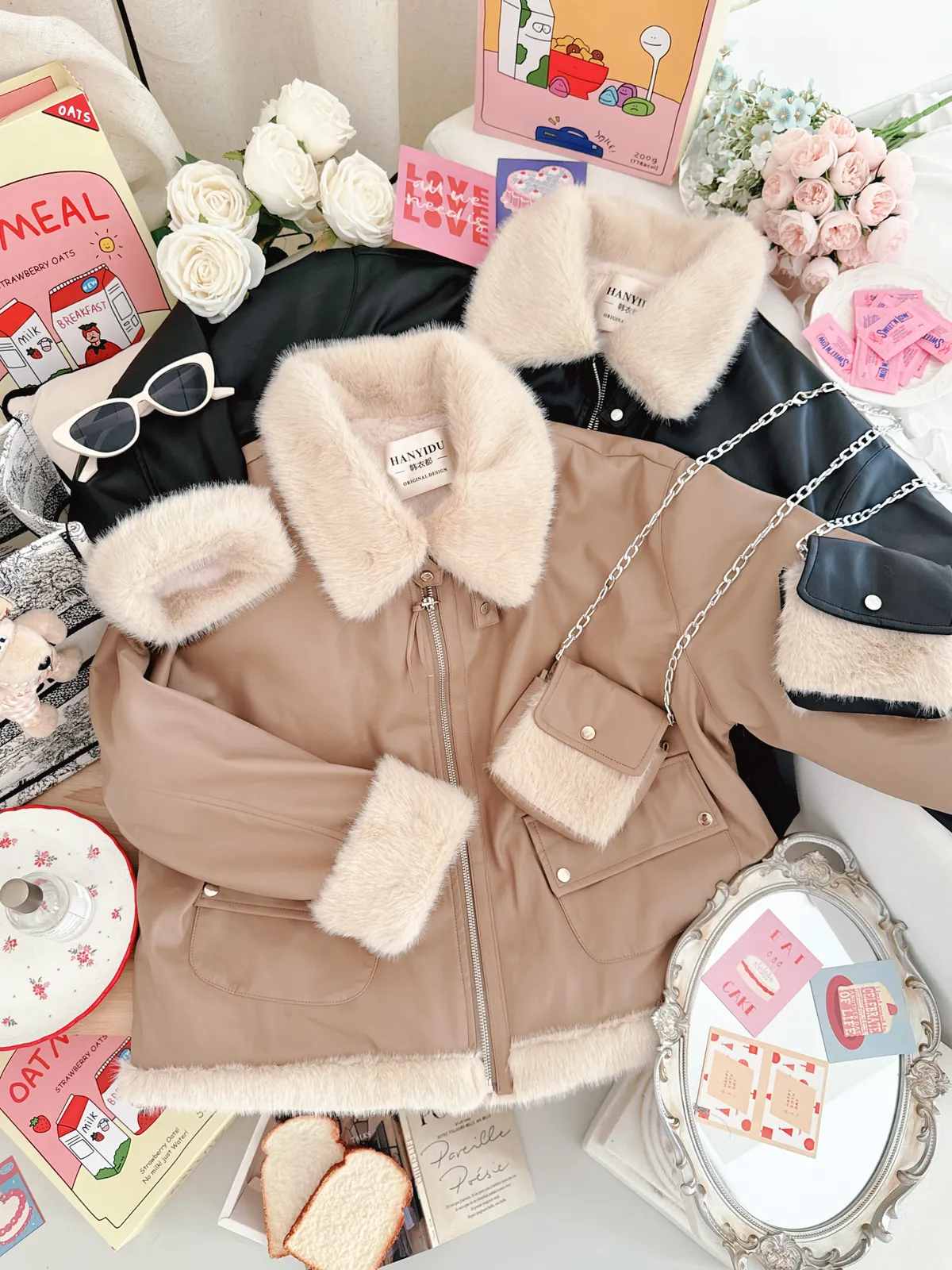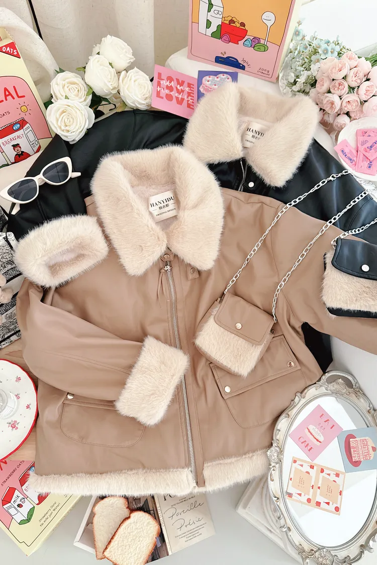 💥率性時髦🖤翻領毛毛皮革外(附小包)‼️