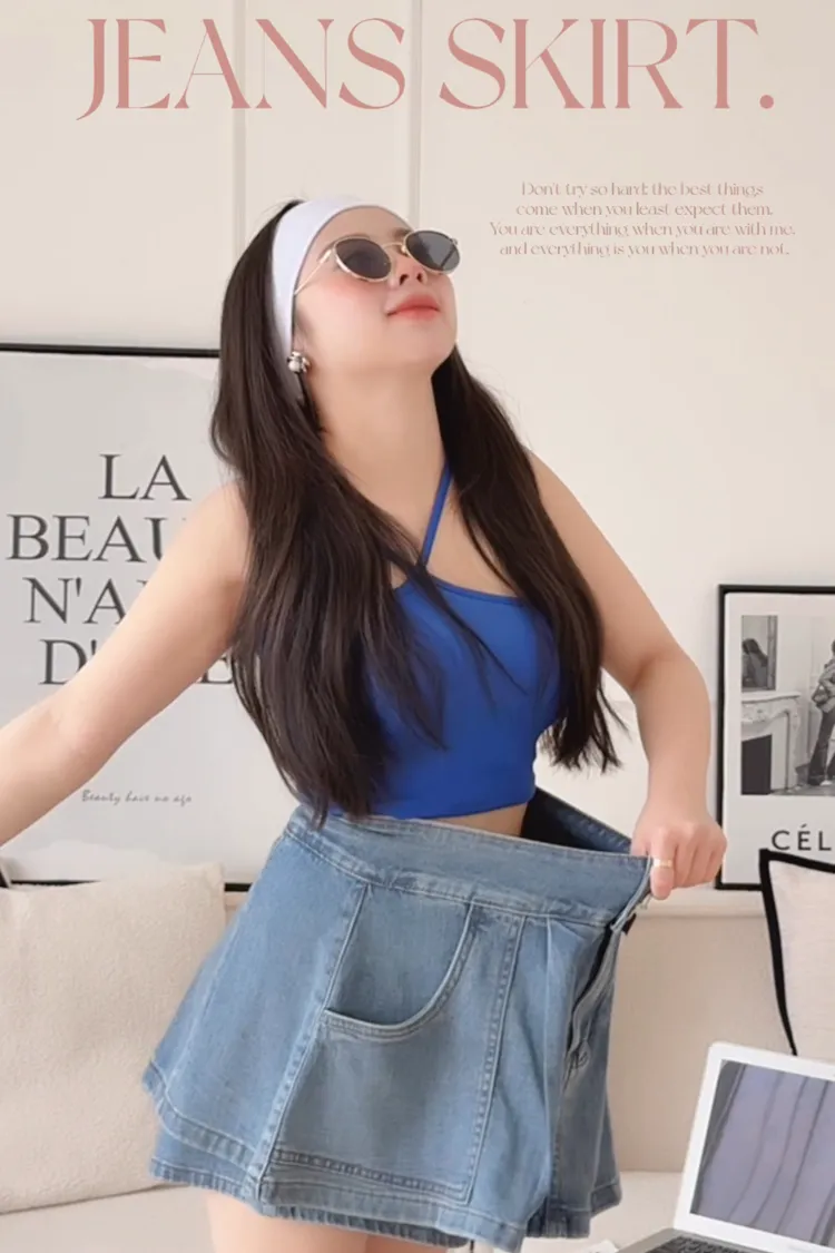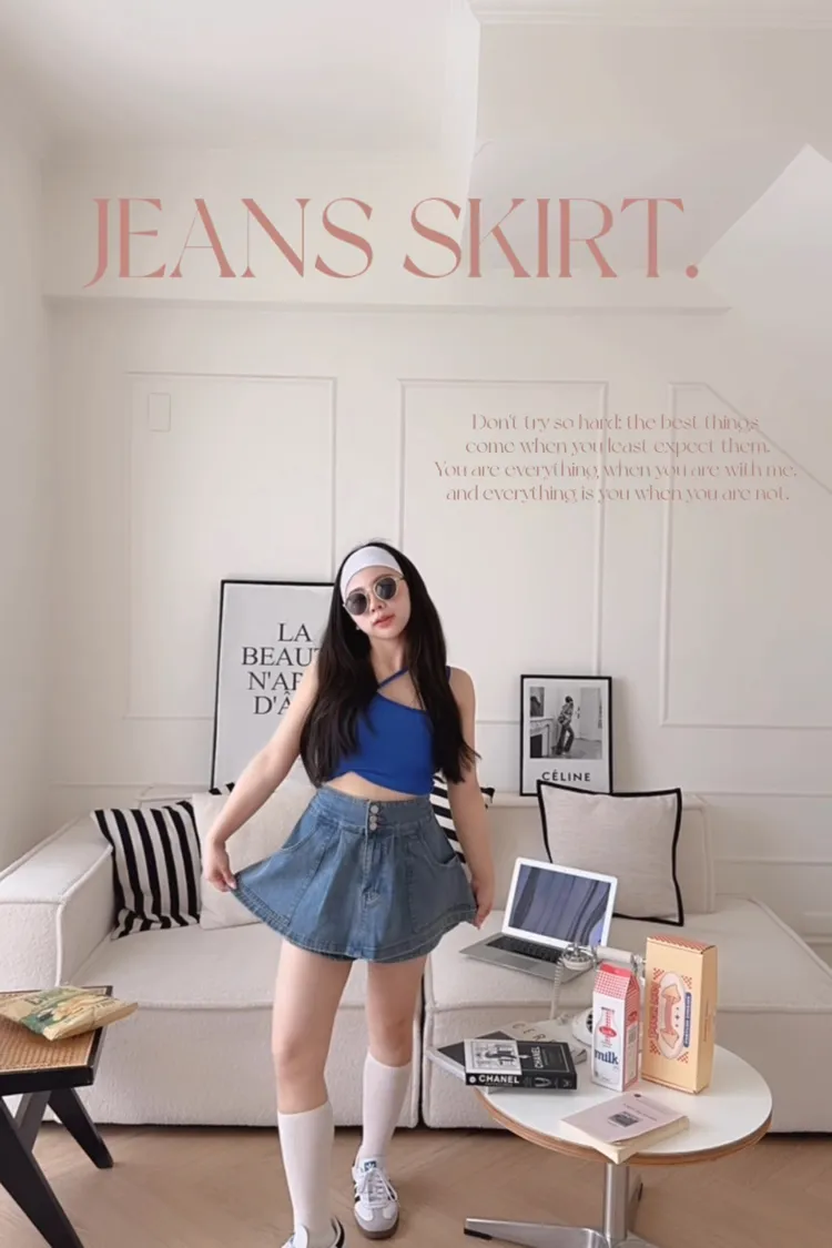 💥午後漫步的穿搭博主🇫🇷層次牛仔褲裙🖤🖤還沒出門就先被誇爆😍👍🏻👍🏻