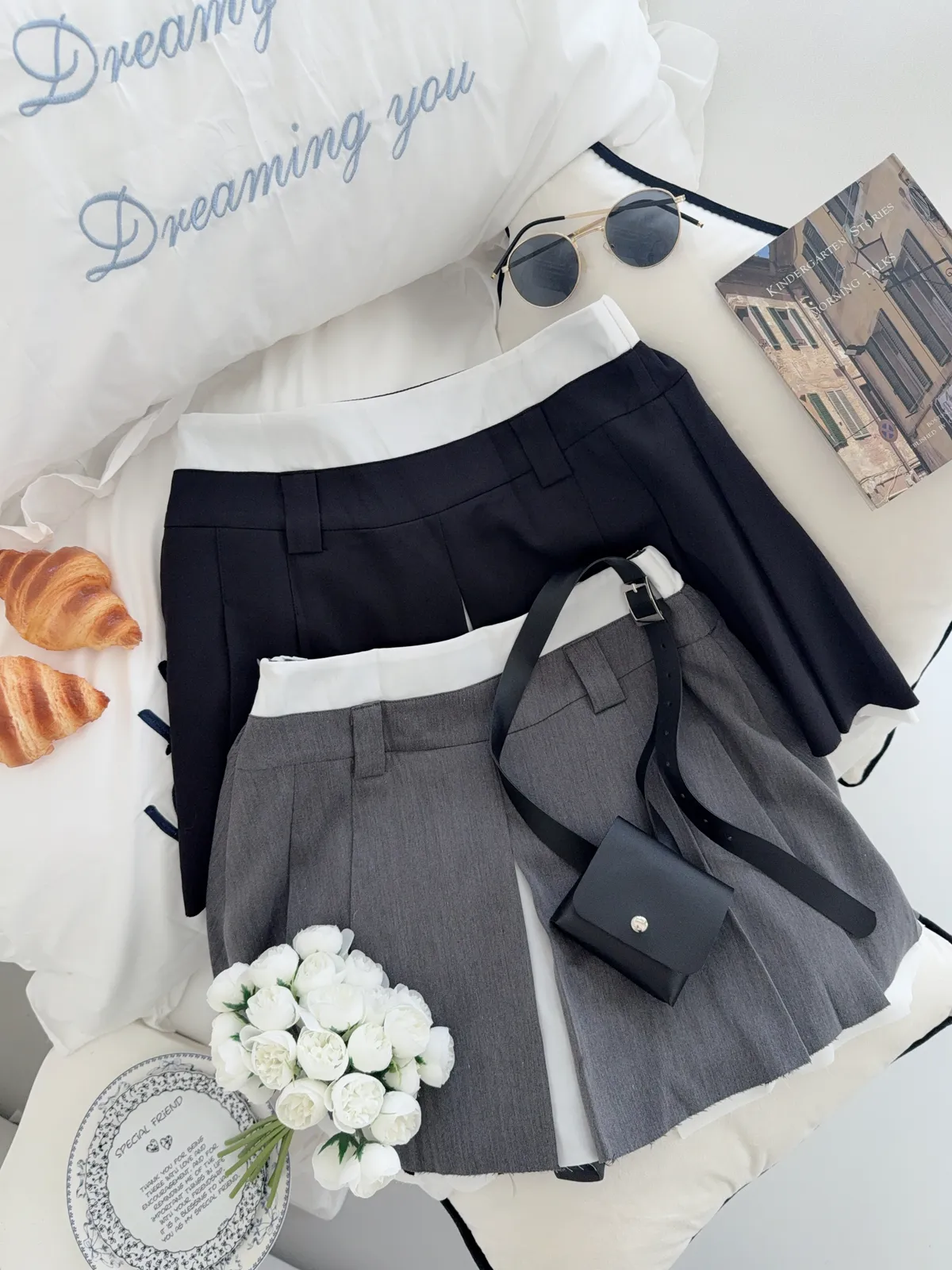 💥miu系美式學院風🖤🖤層次西裝腰包百褶📦(外裙內褲設計✨🍿)