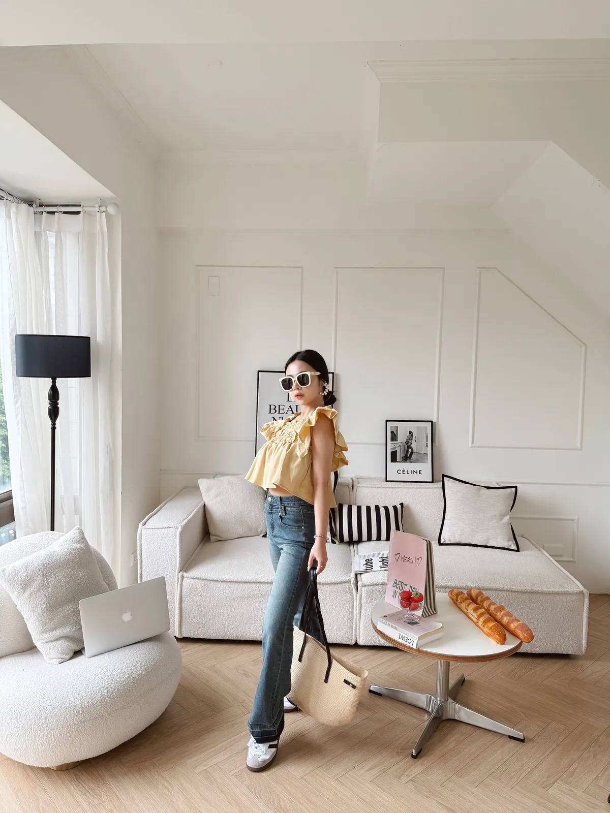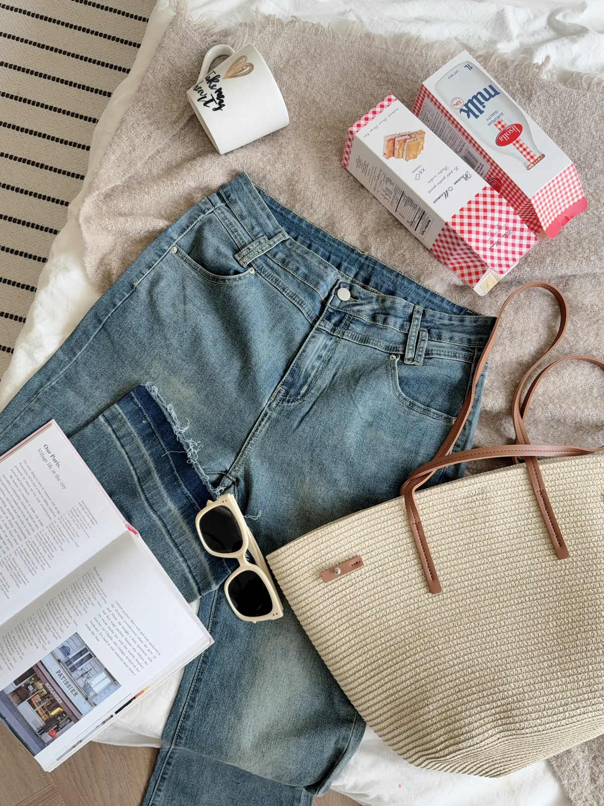 🍿高腰復古牛仔刷色喇叭褲✨💙🎧不挑季節😻🤎