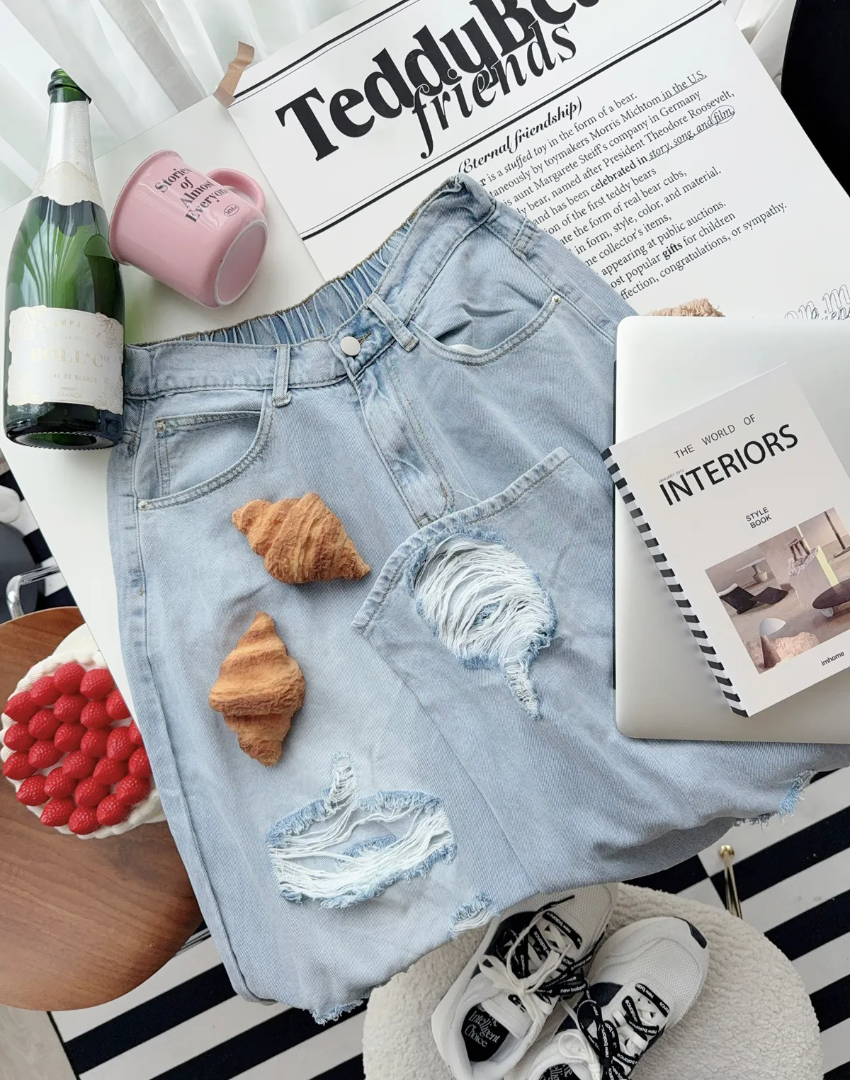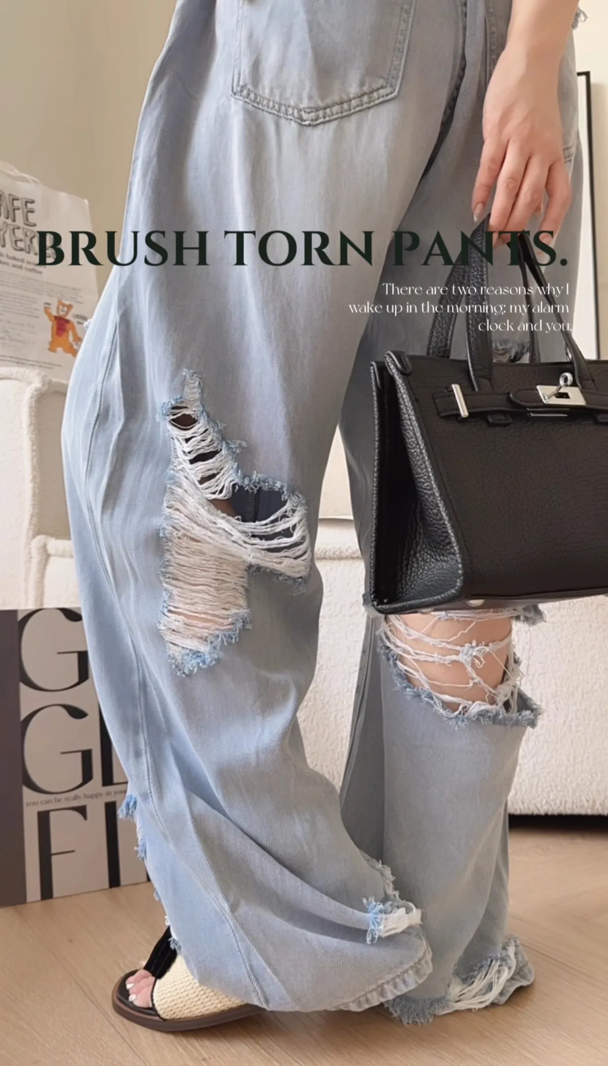 💥💯舒適與時髦兼具✨💙💙天絲男友破破褲🥵五星好評‼️