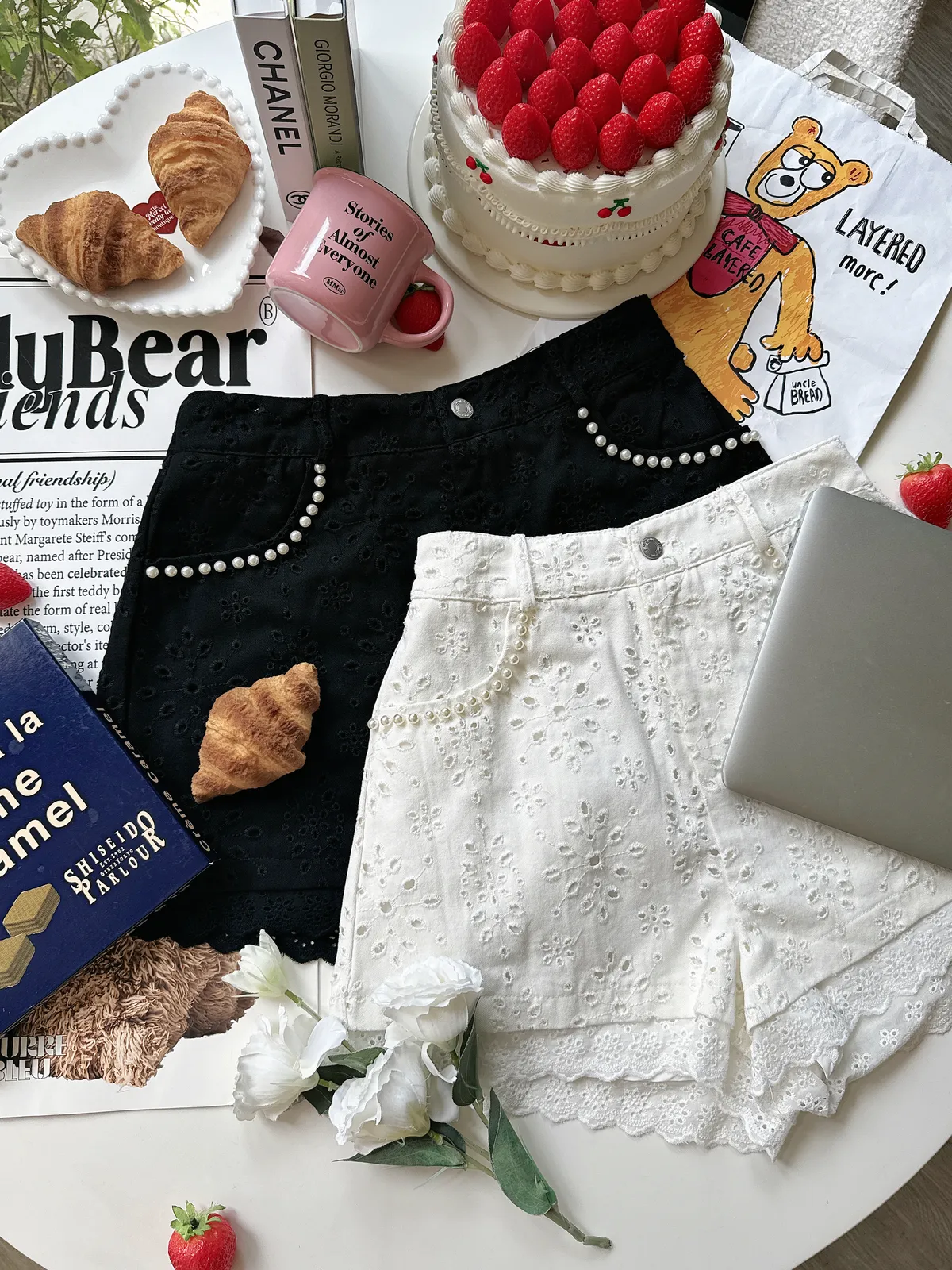 ✨🍅法式緹花👏🏻珍珠剪裁時髦造型短褲💙💙