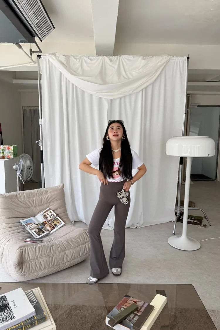 💥時髦激瘦彈力喇叭Legging👏🏻👏🏻🤎不顯尷尬駱駝形🥵[XS-4XL]🔥拆單週五到