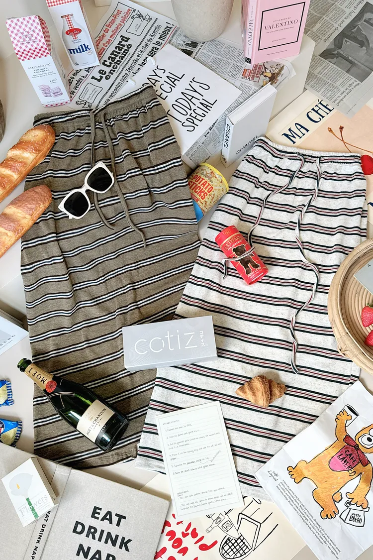 ✨🍿女孩午後咖啡👧🏻🤎法式輕盈條紋長裙💯