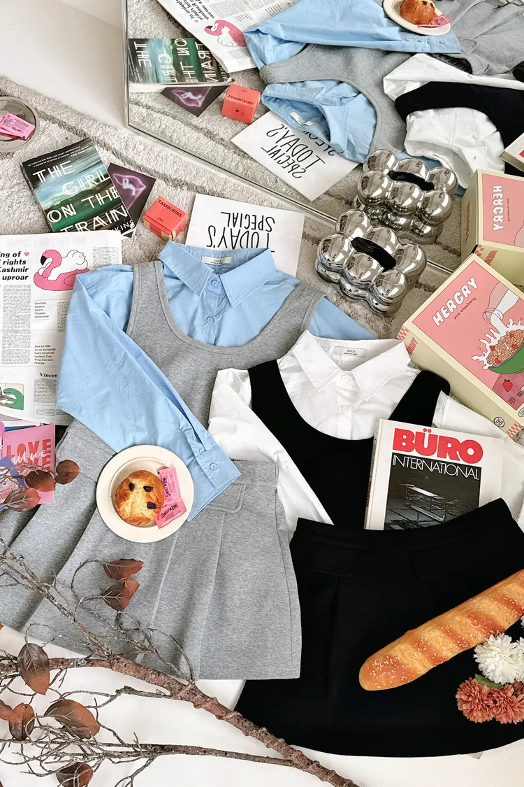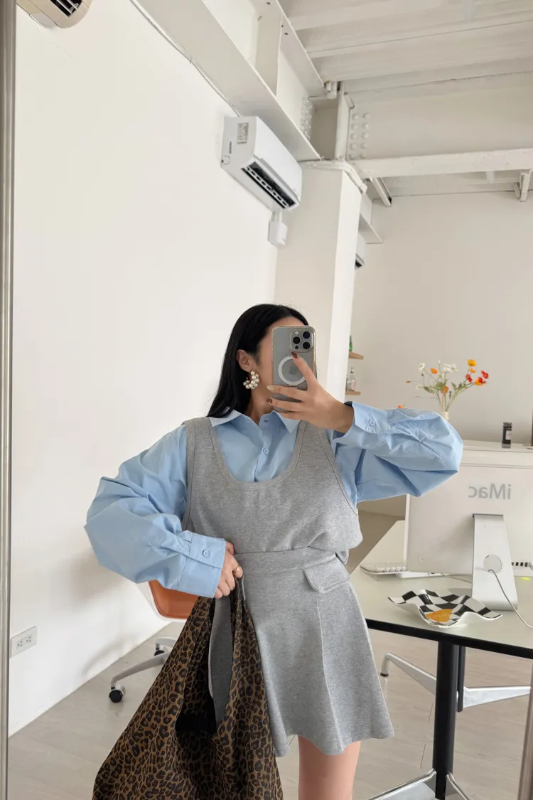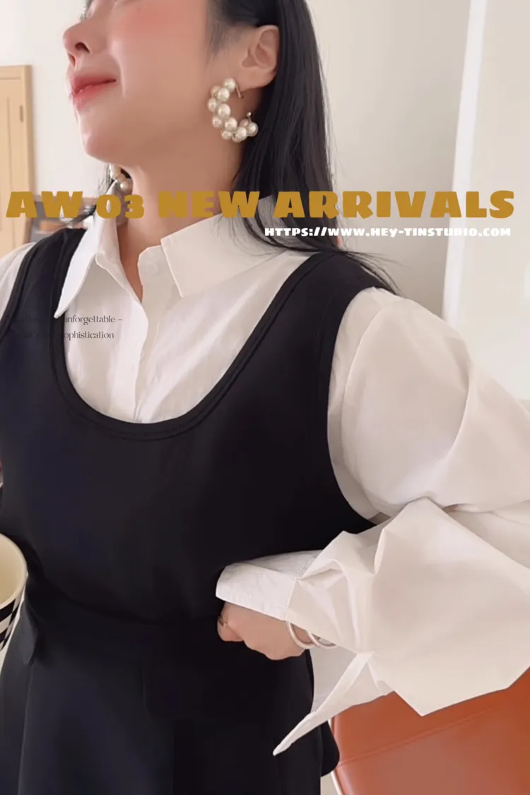 💥摩登繆思女神🍿🤎層次襯衫領兩件套💫