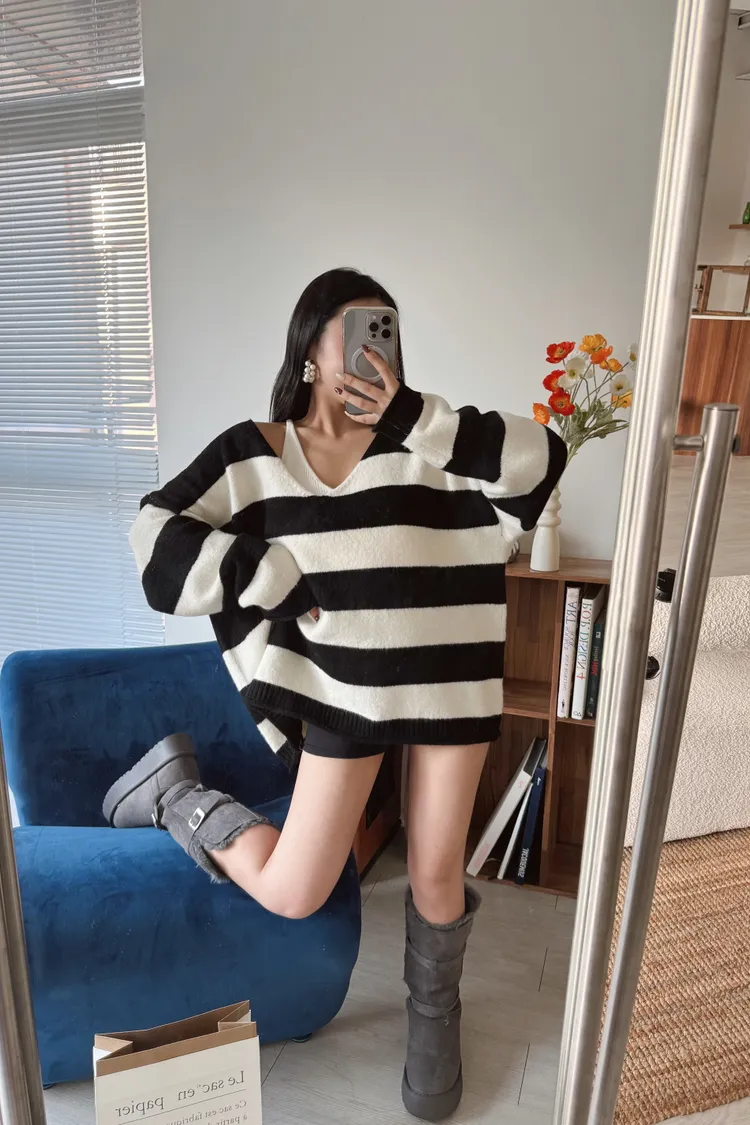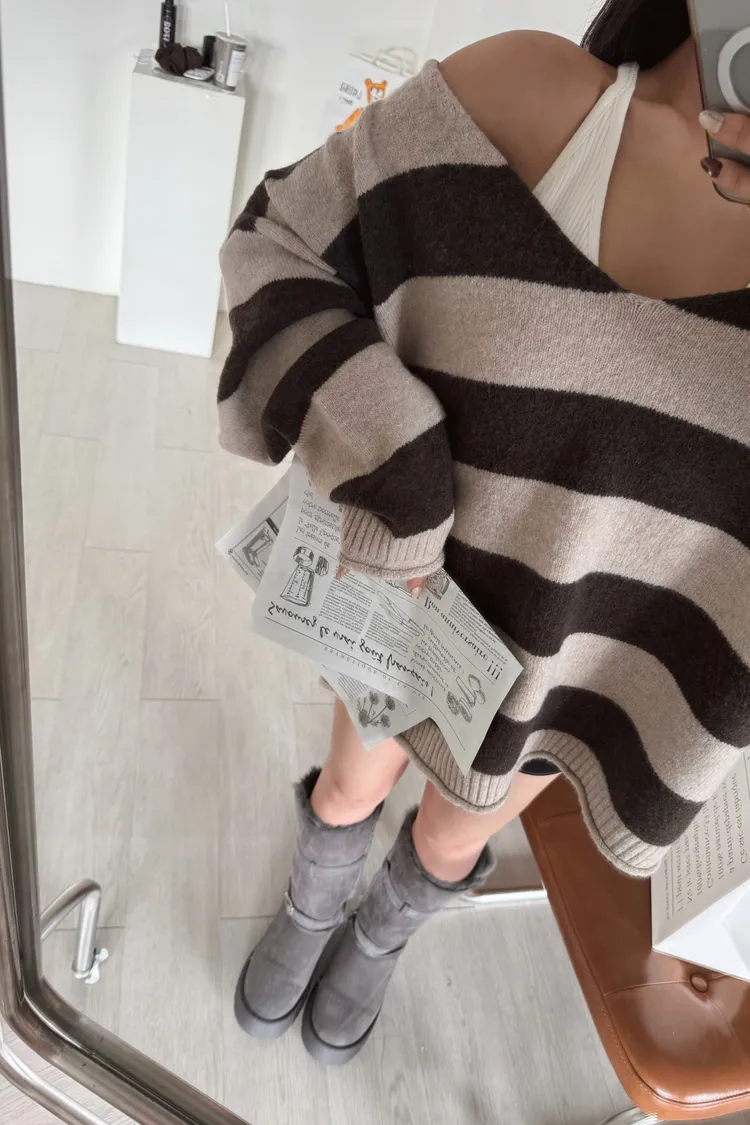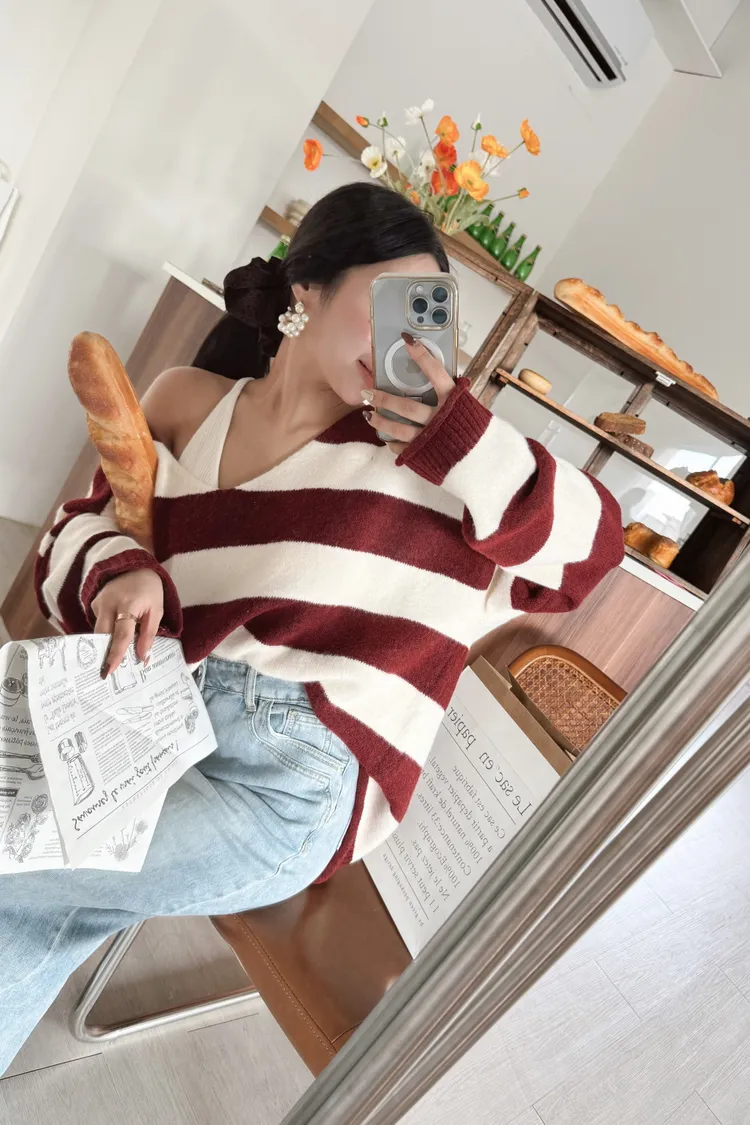 微醺午後☕️法式條紋針織上衣🤎🍂🕰˖ ִֶ