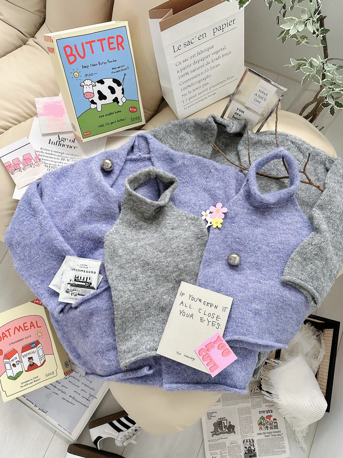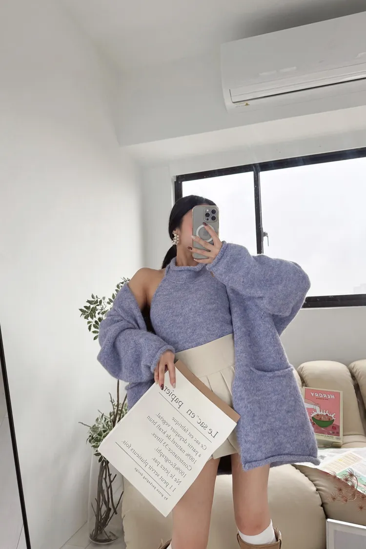 💥嘿嘿🍿🤎午後奶霧削肩毛呢SET🥛(外罩+背心)