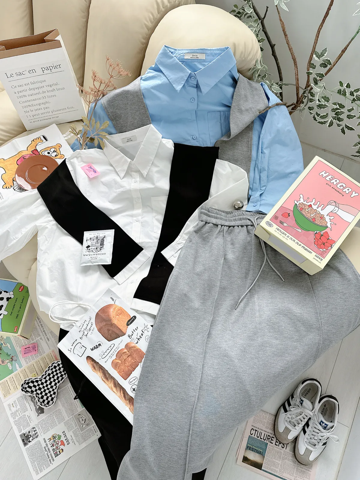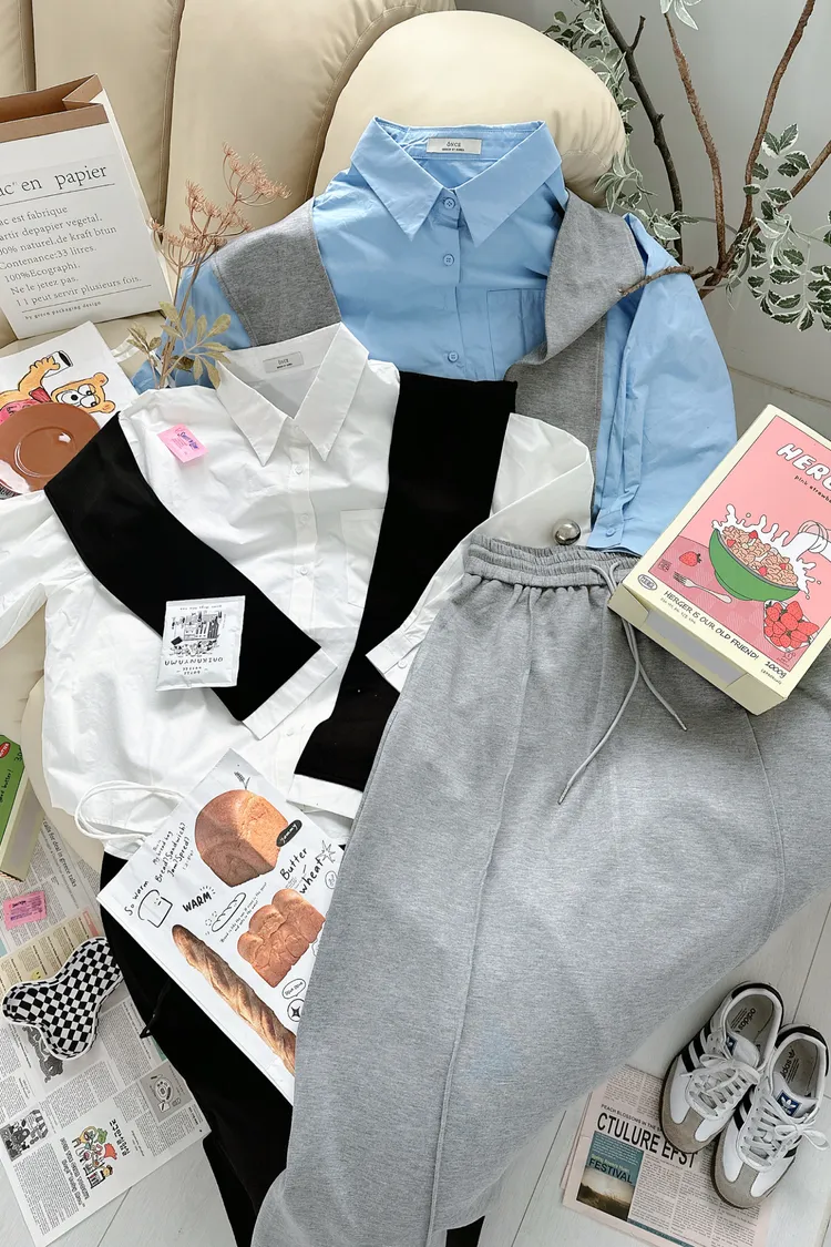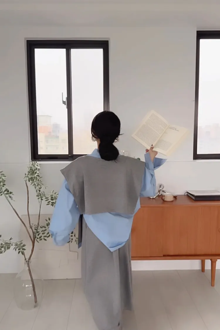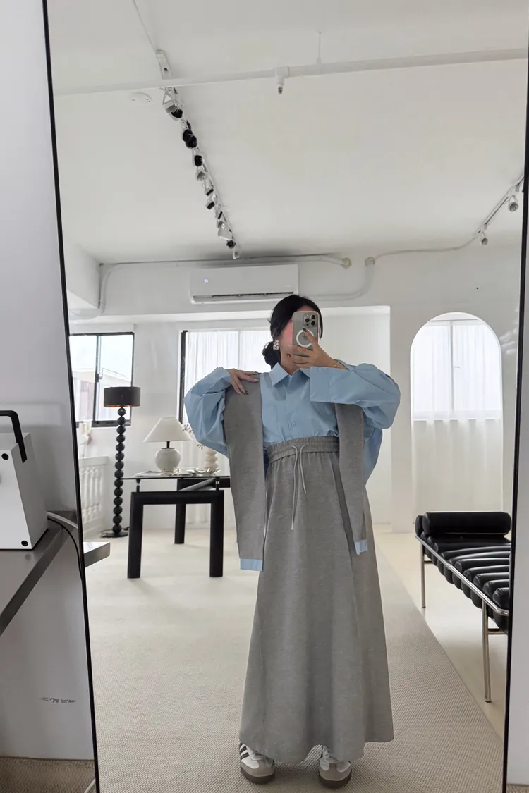 🇰🇷歐膩學院✨💙[披肩+襯衫+長裙]三件SET🍿🔥🔥