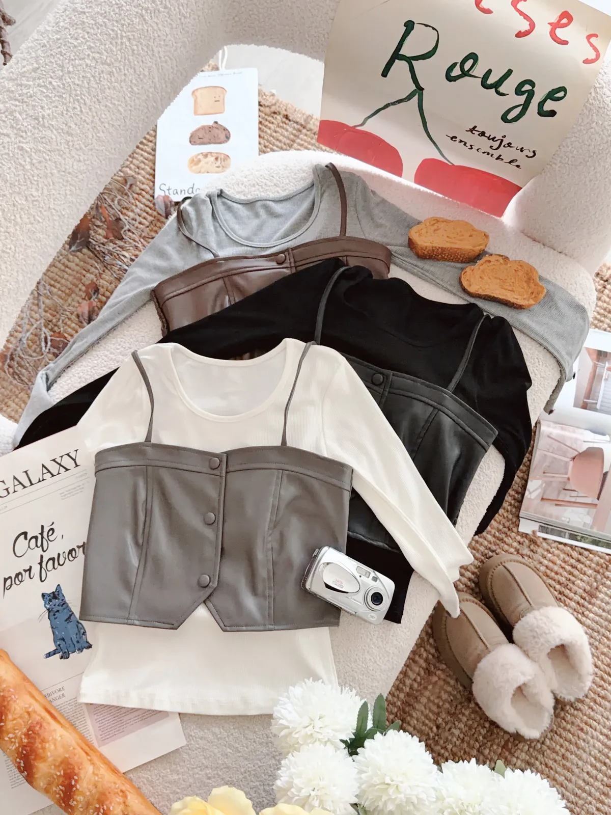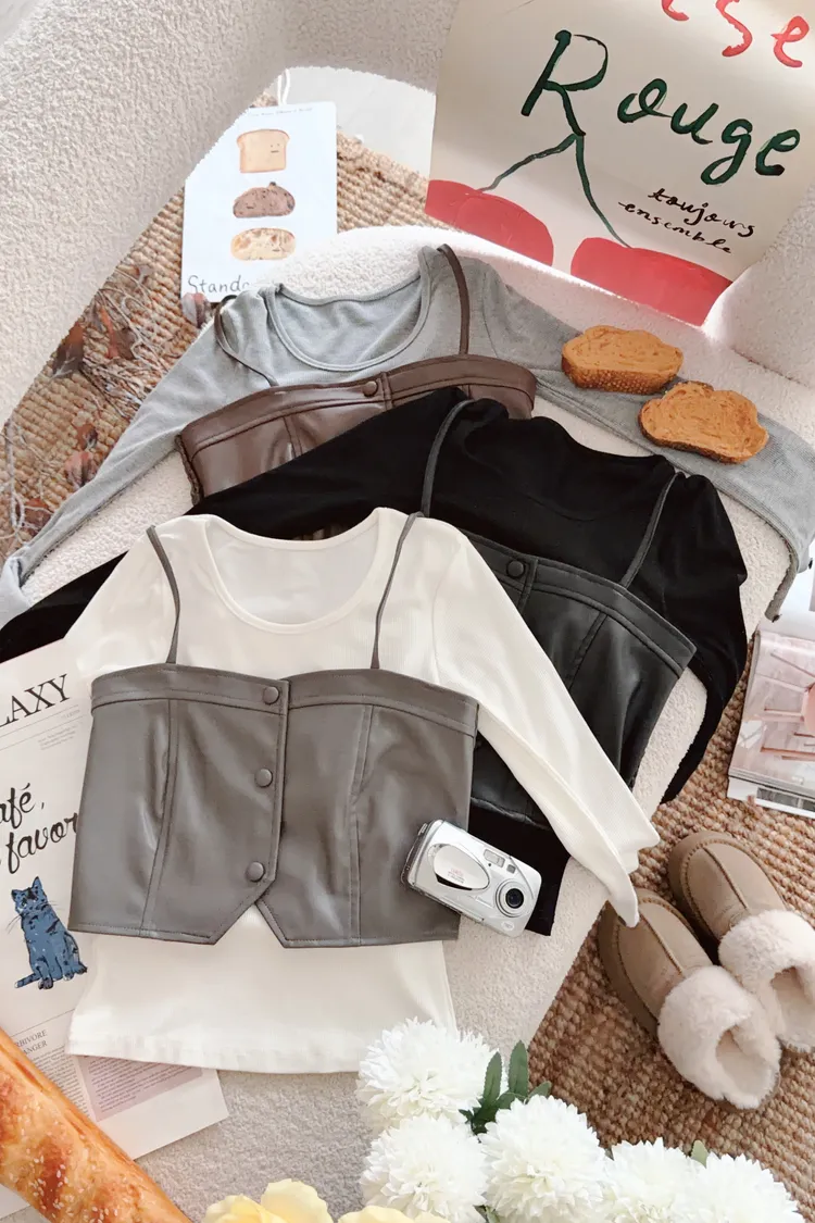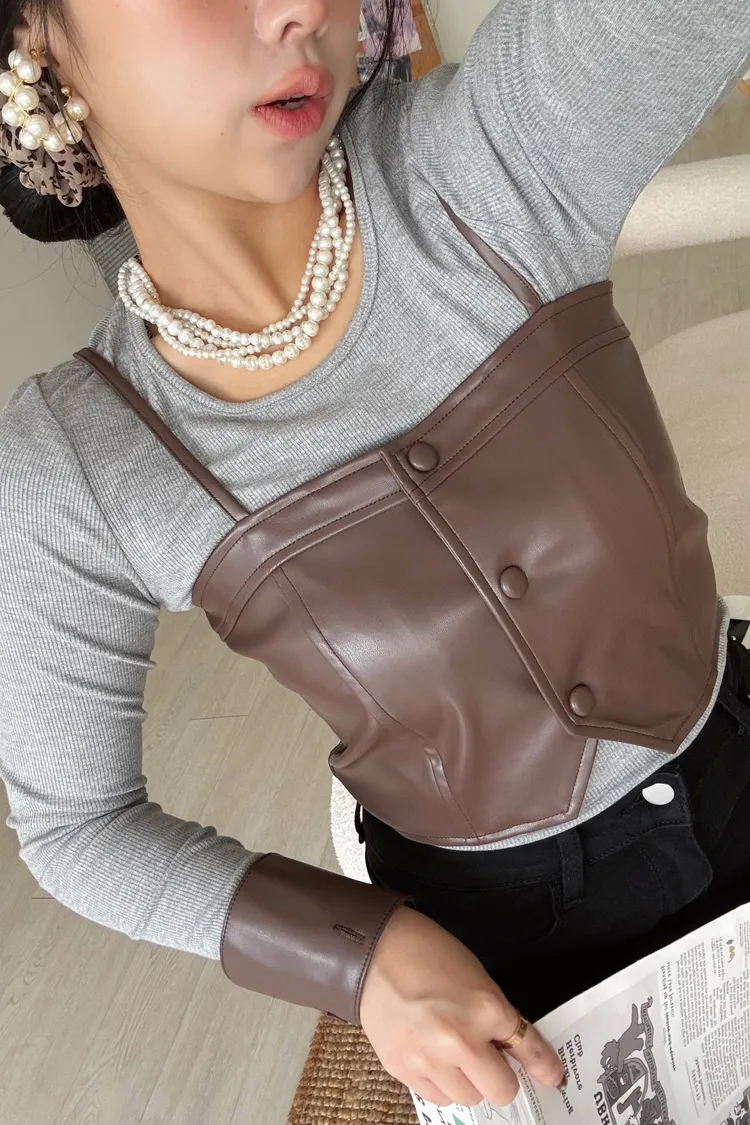 💥時髦小姐姐🤎皮革馬甲兩件SET☕️