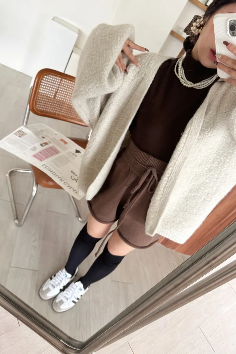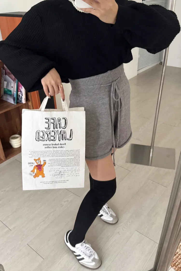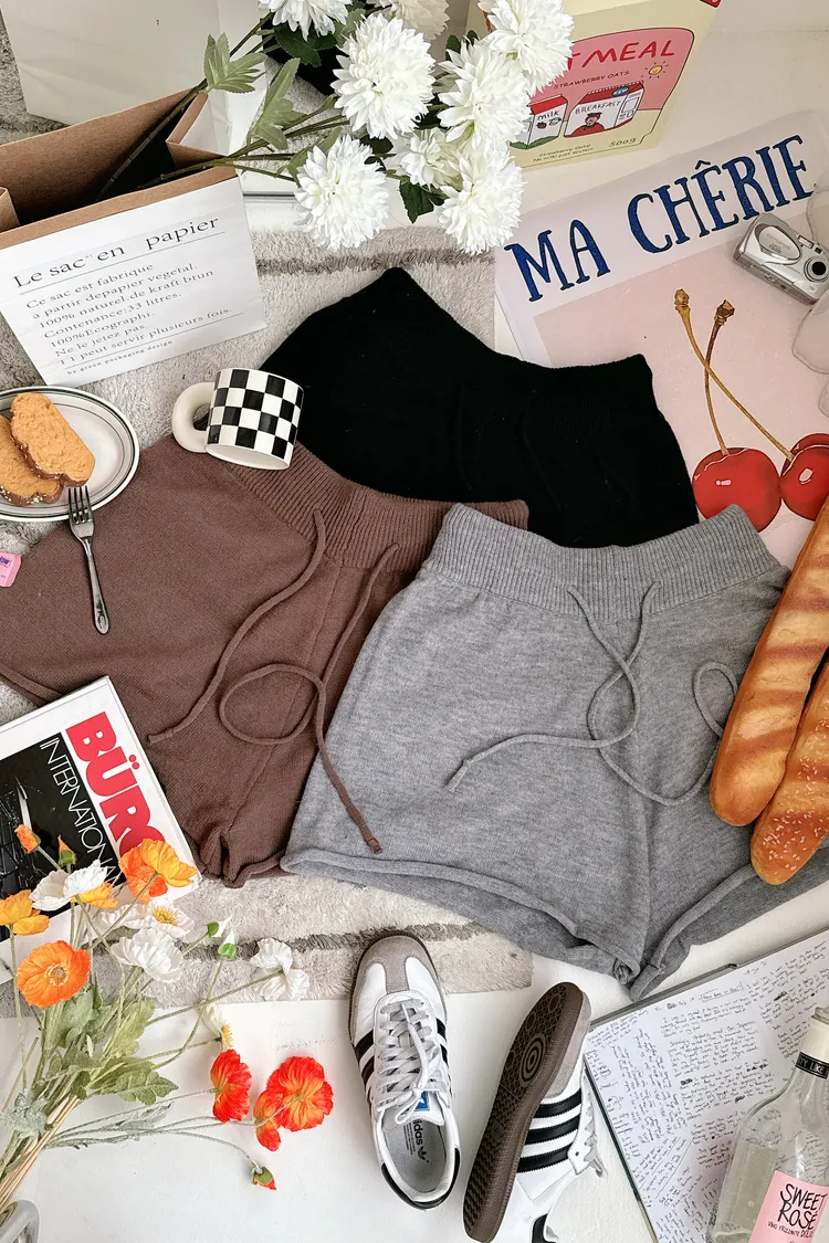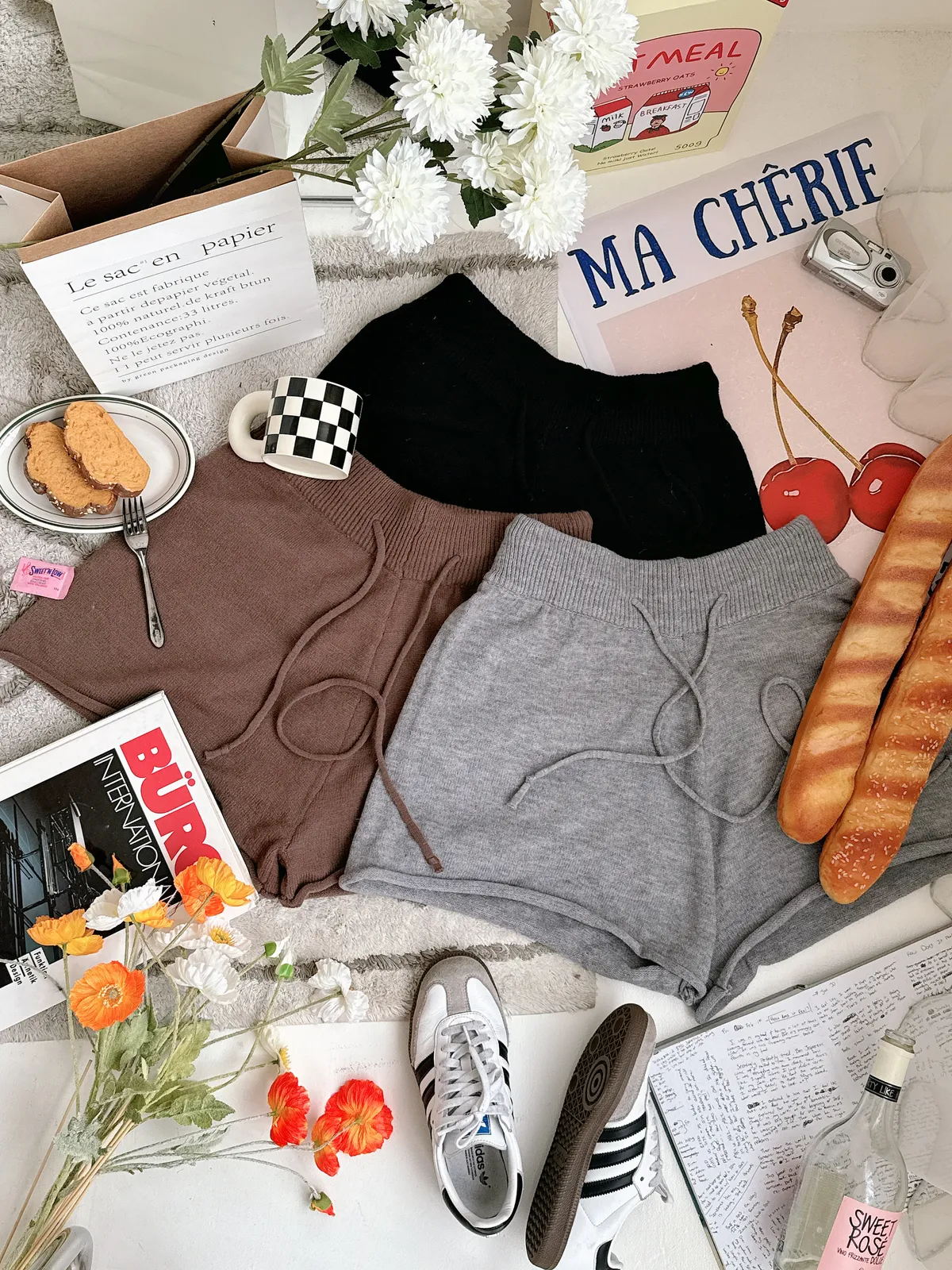 💥時髦必收🍂🤎針織捲邊綁帶短褲💯