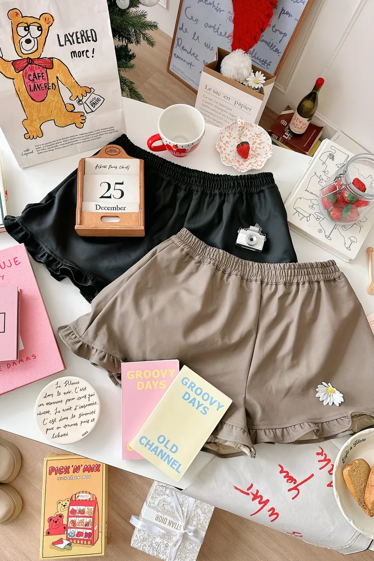 💥霧面時髦荷葉捲邊皮革褲👏🏻🤎沒買到會後悔系列🔥