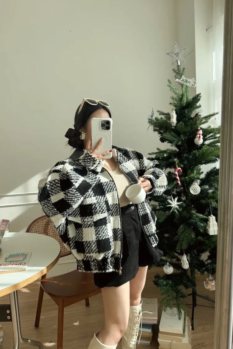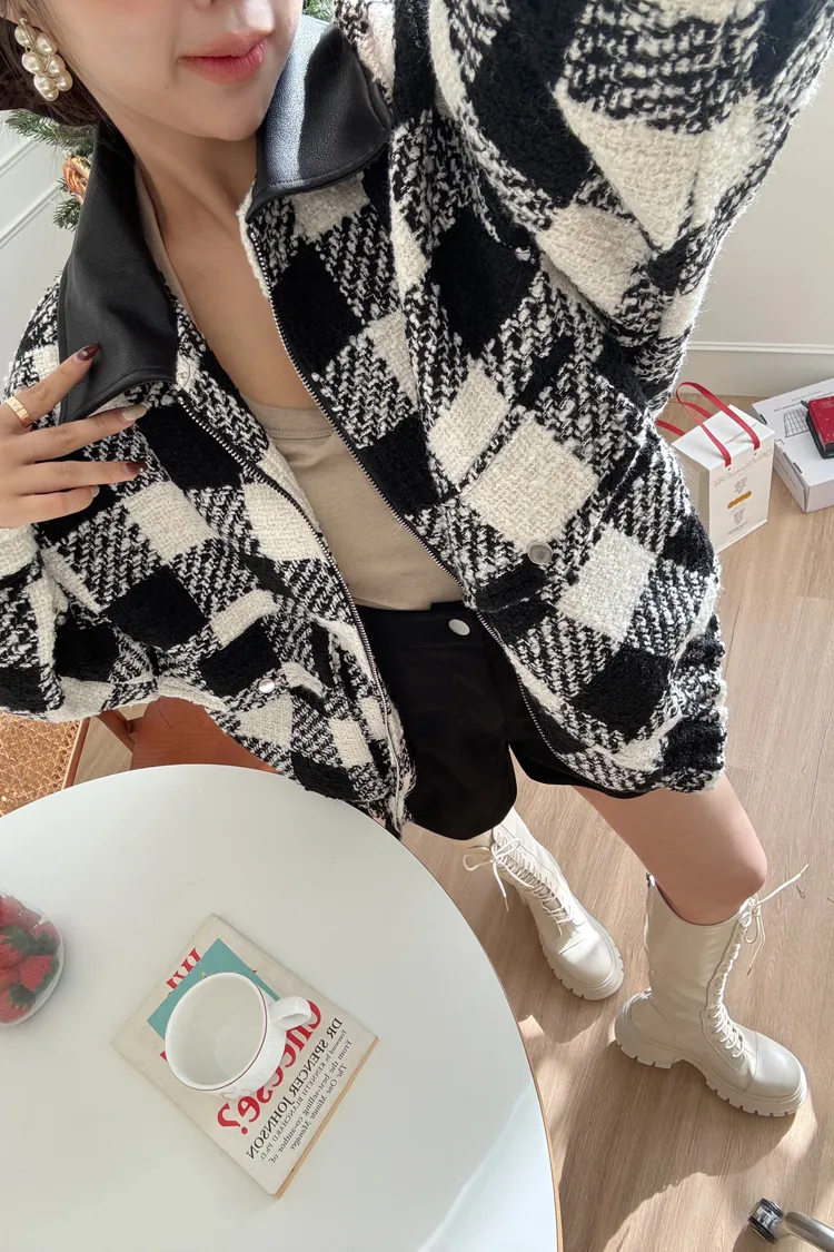 💥時髦小香毛尼拼接皮革外🍿🖤🖤被一堆捧捧自留🙌🏻